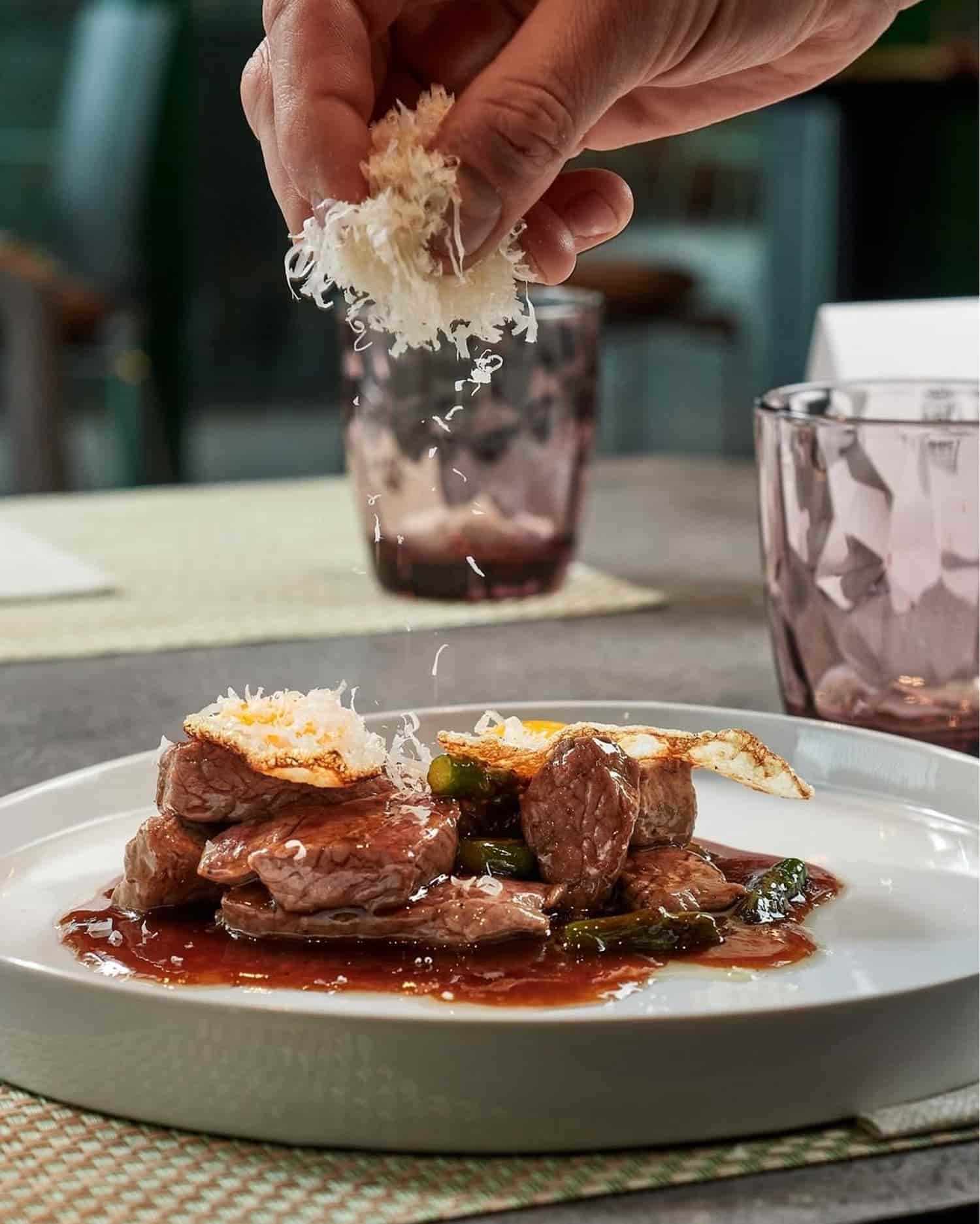 Para muestra, este sugerente plato escogido de su 'Menú Destino': albóndigas de res madurada con salsa de tomate de la abuela, palo cortado y tirabeques salteados con especias chinas, ideal para maridar con Alhambra Reserva Roja, que encaja a la perfección con carnes potentes. Desde Extremadura al mundo.